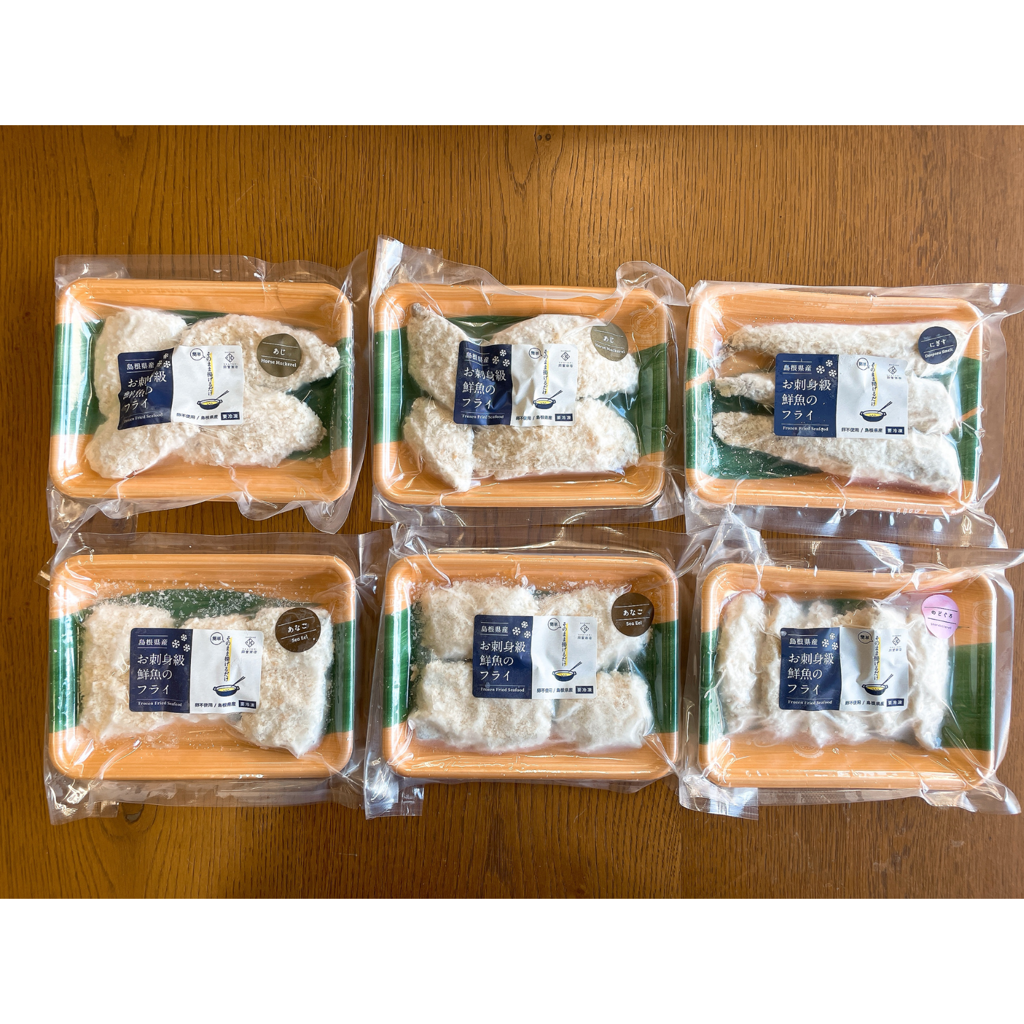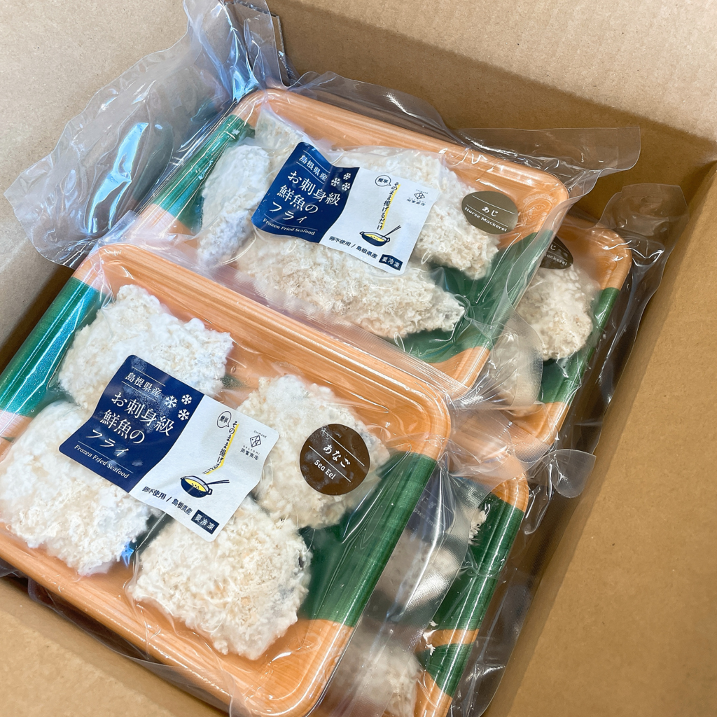・お刺身級鮮魚のフライ「あなご」150g×2パック ・お刺身級鮮魚のフライ「アジ」150g×2パック ・お刺身級鮮魚のフライ「のどぐろ」150g×1パック ・お刺身級鮮魚のフライ「ニギス」230g×1パック |